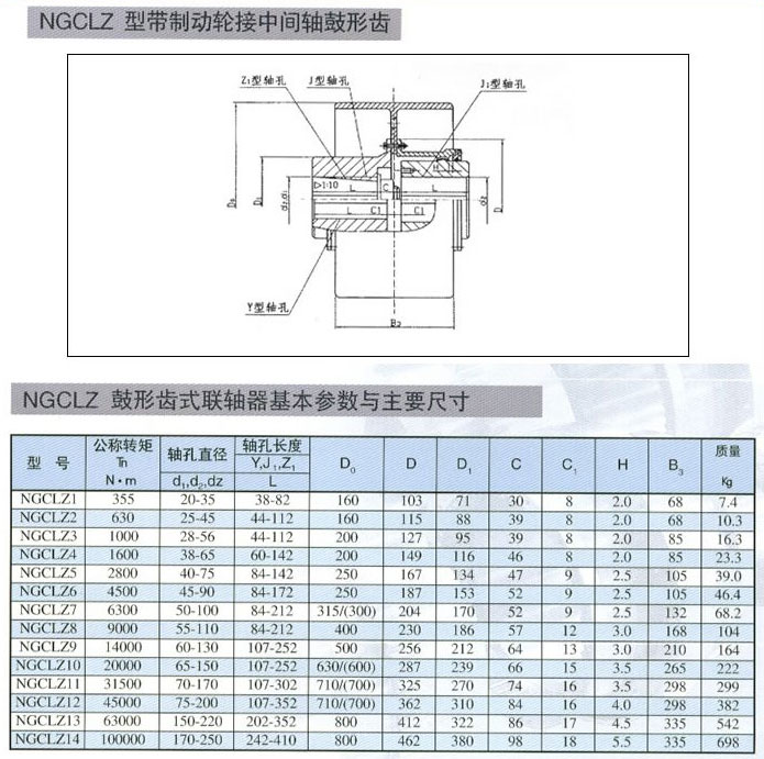 NGCLZ型帶制動輪接中間軸鼓形齒式聯軸器